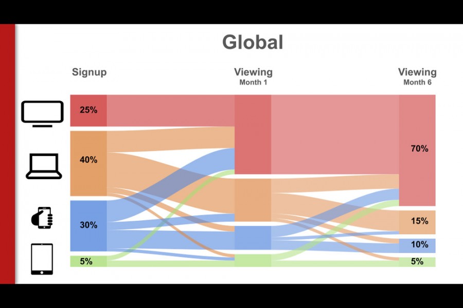 70% der Netflix Abonnenten nutzen den Service nach spätestens 6 Monaten am TV Gerät. Dies ist keine grosse Überraschung. Netflix hat immer die Wichtigkeit von TV betont und dafür gesorgt, dass ihr Service auf allen SmartTVs und Setop Boxen (z.B. Swisscom TV, UPC, etc.) empfangen werden kann.
